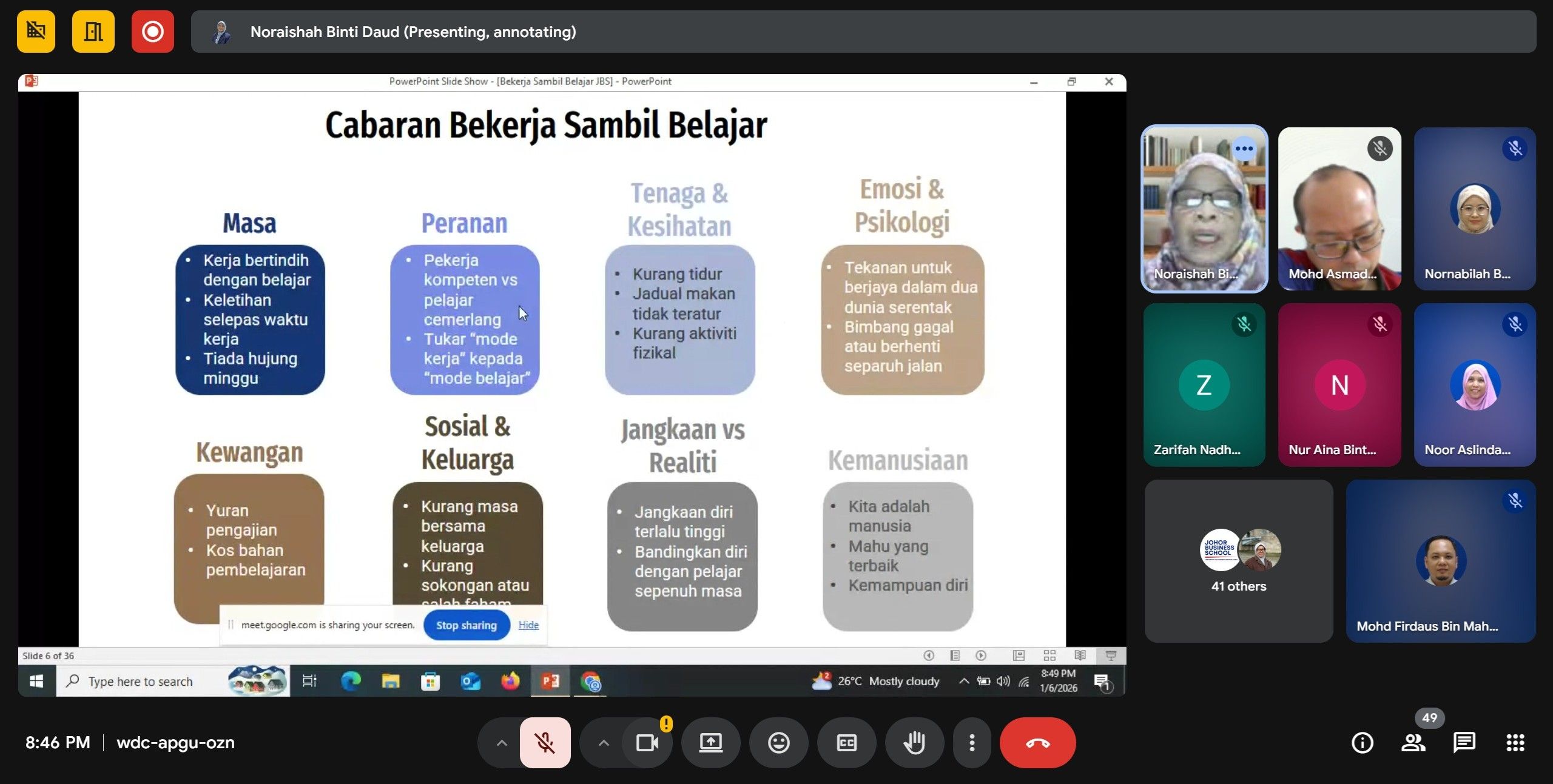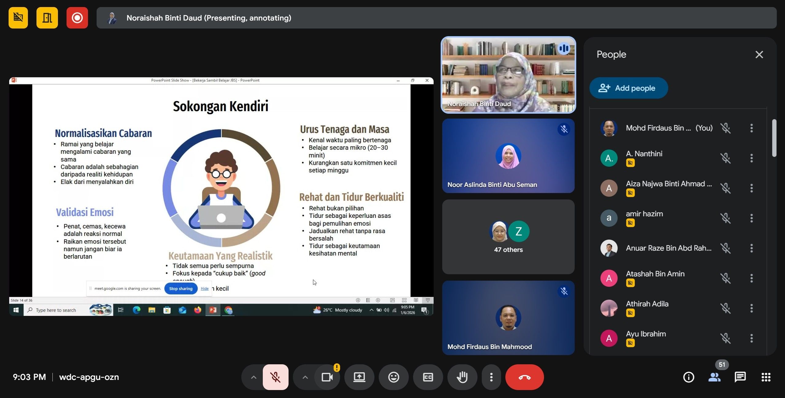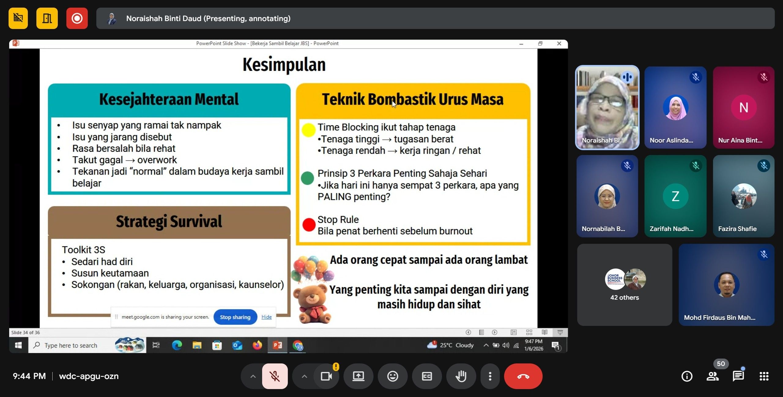 06 January 2026 : Google Meet Session - ''Work While Studying: Mental Well-Being and Time Management''
